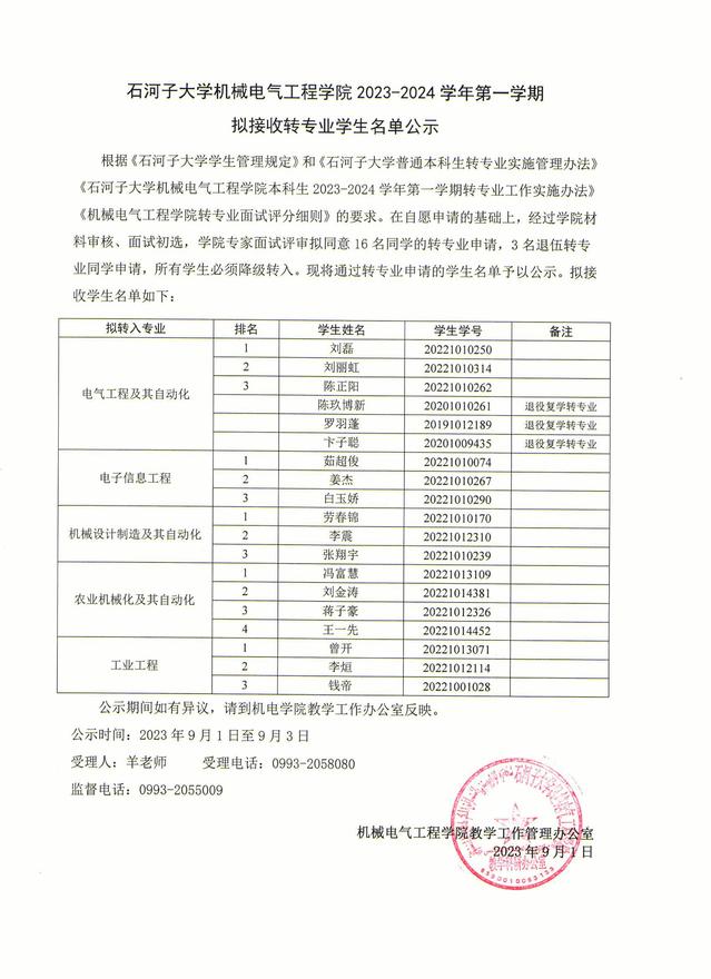 yl23411永利2023-2024学年第一学期拟接收转专业员工名单公示