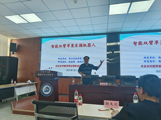 9月1日,公司2023年“勤工·笃学”学术讲坛第十七期、第十八期和第十九期在北苑新区工科楼402多媒体室成功举办。此次邀请到了西北农林科技大学机械与电子工程公司杨福增、朱新华和郭文川三位教授,分别为公司师生带来题为“苹果园作业机械研发”、“旱区果园土壤增碳节水技术与装备研究”及“果品内部品质智能无损检测技术及仪器研发”的学术报告。本次学术报告活动由公司陈江春副经理主持,公司教师、本科生、硕士和博士研究生共120余人参加了本次讲座。