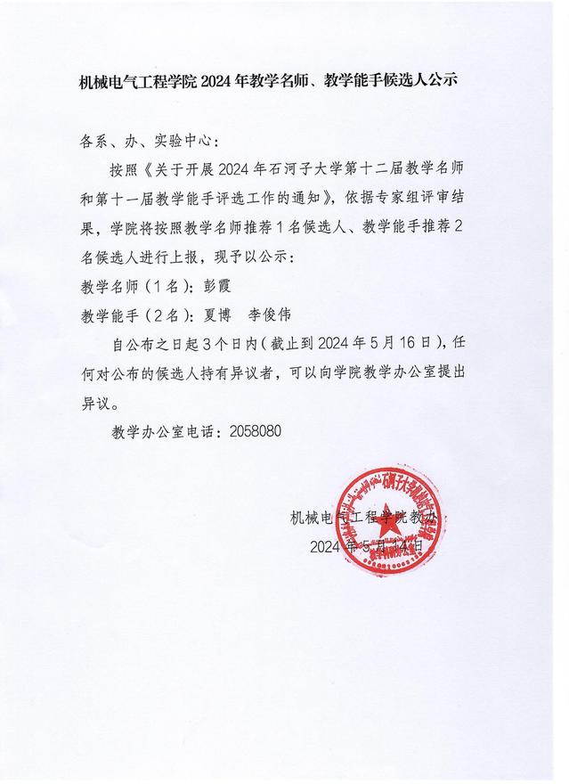 yl23411永利2024年教学名师、教学能手候选人公示