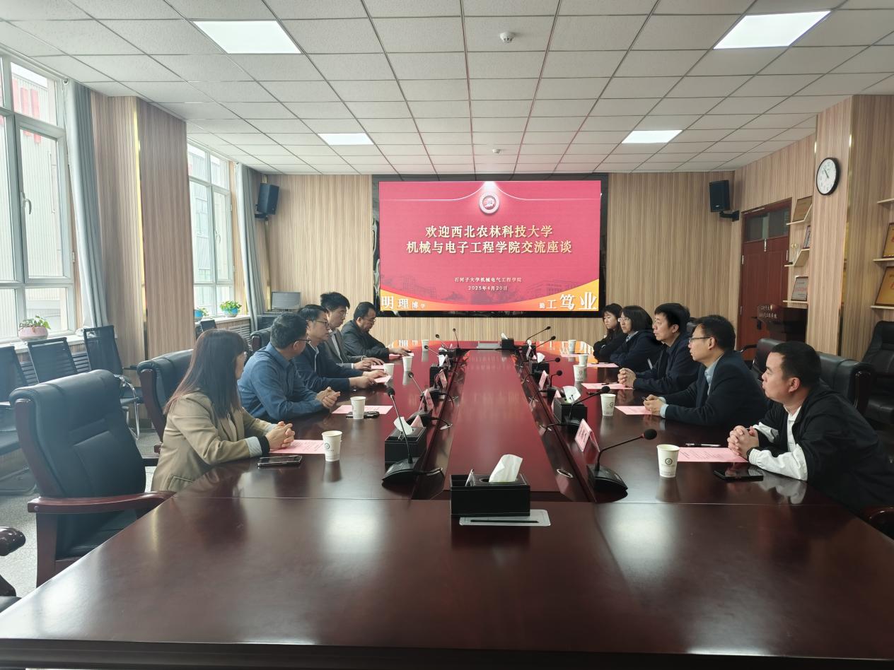 4月20日,西北农林科技大学机械与电子工程公司党委书记王雄、副经理苏宝峰等来院座谈交流,公司党委教师工作部(人事处)副部长(副处长)张爱国(援疆),食品公司党委委员、副经理任亚梅(援疆)参加。座谈会由公司党委书记汤骅教授主持。