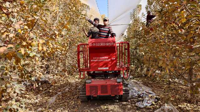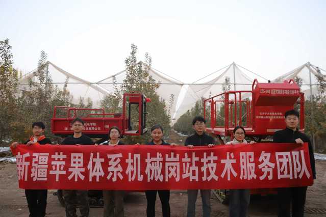 2025 年 10 月26 日至11月 10 日,yl23411永利、新疆苹果产业体系果园机械化技术与装备岗李景彬教授团队赴第一师五团开展自主研制的两款自走式多功能采摘平台技术推广与现场演示活动。