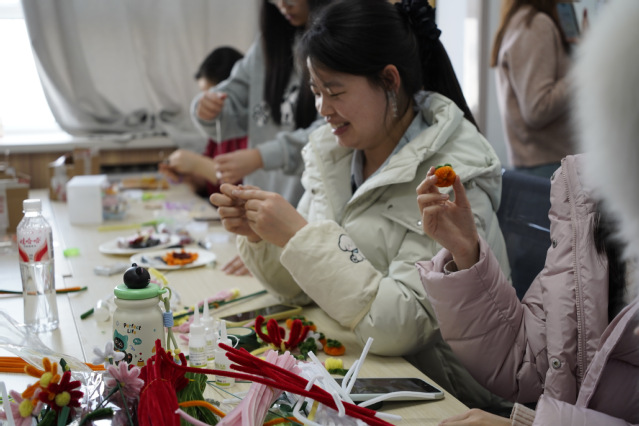 活动现场还准备了扭扭棒、陶泥、手链制作等DIY材料,丰富的创作材料让大家尽情发挥巧思,亲手制作专属手作小物,在指尖的创作中感受美好,师生们围坐交流、分享喜悦,分享活动中的趣味瞬间与真切感受,进一步拉近了师生之间、同学之间的距离,让温暖与美好在彼此间传递。